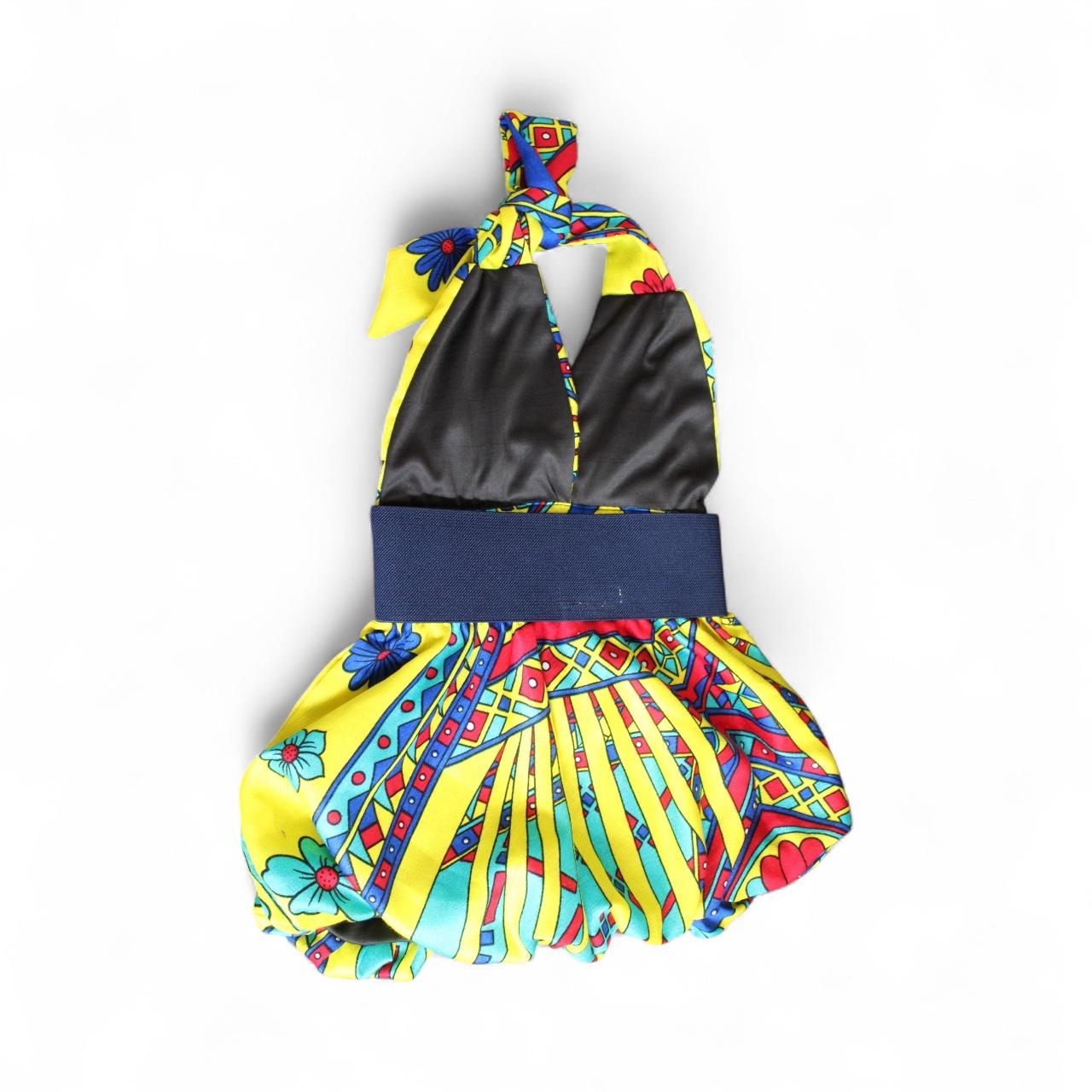 This adorable Halter Bubble Skirt Dress is made from authentic Paruma Fabric from the Embera Wounaan tribe of Panama. Each piece is lovingly handmade by me, combining traditional indigenous artistry with a fun, playful design perfect for little ones. With its vibrant turquoise, red, and yellow tones, this dress celebrates culture and color—making it a one-of-a-kind piece for any special occasion or joyful day.